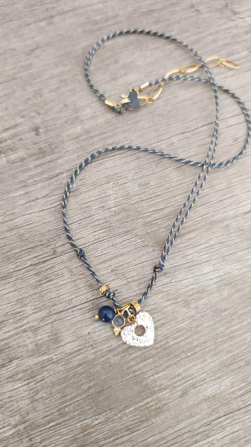Perles d'ardoise taillée à la main par la créatrice en signature sur le fermoir