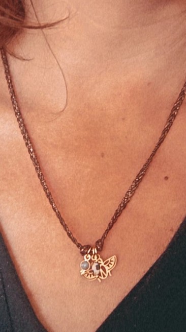 Perles d'ardoise taillée à la main par la créatrice en signature sur le fermoir