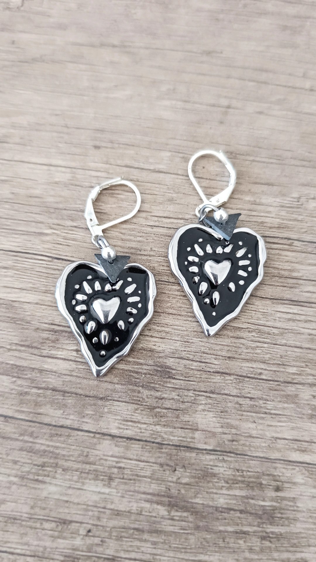 Boucles d'oreilles coeur noir